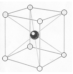 La estructura del Cloruro de cesio se puede ver en la figura 4. Hay una molécula por cada celda primitiva, con átomos en las esquinas y en el interior a partir de una red cúbica primaria, también conocida como cúbica I. Cada átomo puede ser visto como el centro de un cubo de átomos de la clase opuesta, así el número de sus vecinos más próximos son de 8. Las siguientes moléculas tienen la misma estructura: