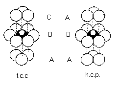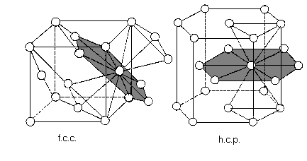 El número de vecinos inmediatos de un átomo cualquiera es de doce tanto en los hcp como en los fcc. En la siguiente tabla aparecen los elementos que se estructuran como hcp: