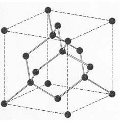 La estructura del Diamante está basada en la red cúbica centrada en las caras o fcc. La celda primitiva consiste en dos redes fcc, la primera centrada en el punto (0,0,0), y la segunda está centrada en el (¼,¼ ,¼), o sea que está desplazada ¼ respecto la diagonal del cubo de la primera red.